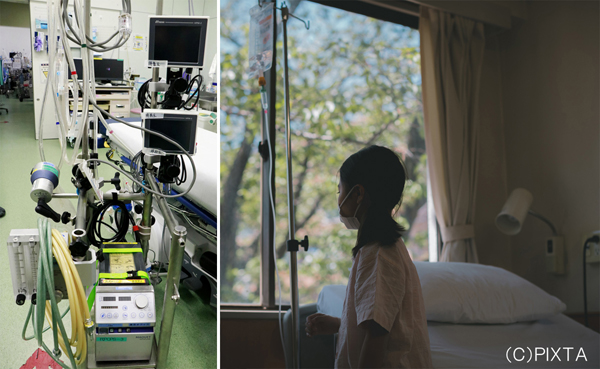 特効薬もワクチンもなく、とりあえずつらい症状を緩和する(左は、重症の肺炎患者の治療に使われるECMO〈エクモ〉)/(C)共同通信社