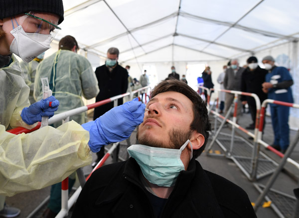 鼻や喉からの検体採取より安全(C)ロイター