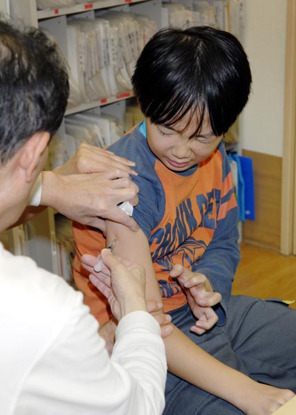インフルエンザの予防接種を受ける子供(C)共同通信社