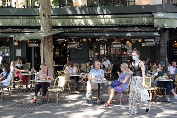 ロックダウン解除後、カフェで楽しむ人々(フランス・パリ)/(C)共同通信社