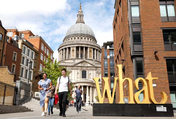 ロンドン大聖堂の近くを歩く人たち(C)ロイター