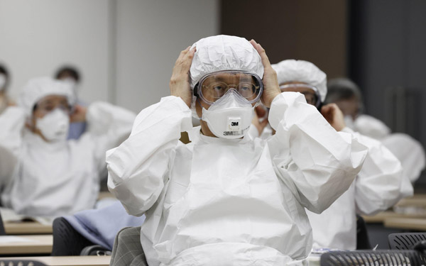 東京都医師会が医師向けの訓練を実施(C)共同通信社
