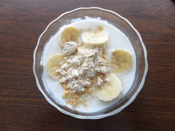 花粉症の症状を抑えたい…きな粉と果物入りヨーグルトを
