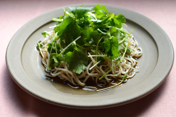 そばに三つ葉とカイワレ大根を乗せて「気」を巡らせスリムに