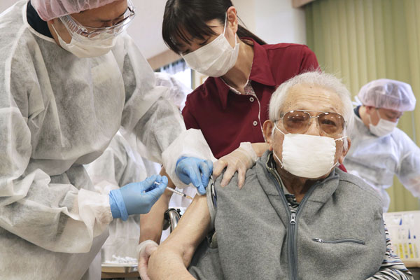 利き腕ではない方に接種するのが望ましい(代表撮影)