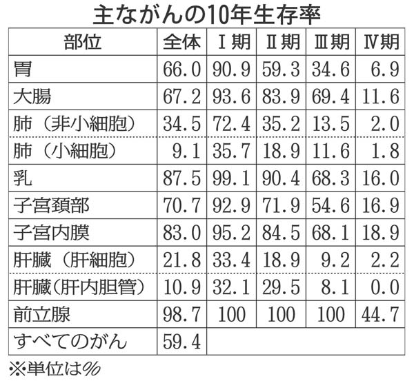 主ながんの10年生存率(C)日刊ゲンダイ