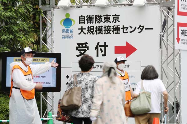 大規模接種会場へ向かう人たち(C)日刊ゲンダイ