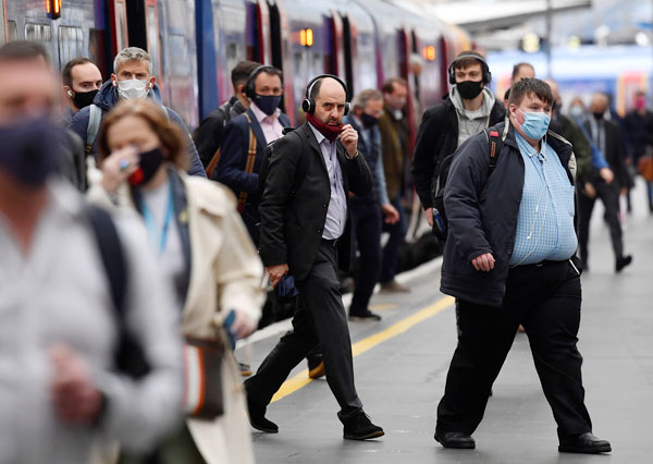 英国の感染者数は増加傾向(ロンドン朝の通勤風景)/(C)ロイター