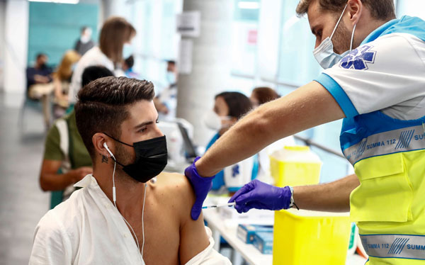 新型コロナウイルスワクチンの接種を受ける若い男性(スペイン)/(C)ロイター