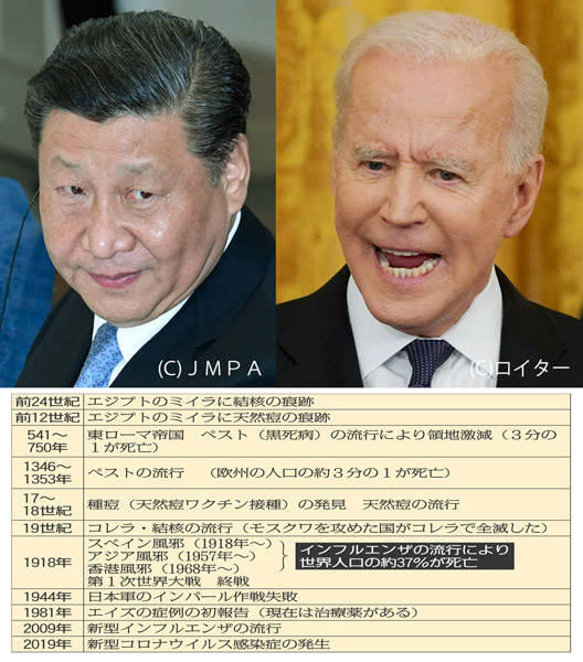 感染症流行の歴史(写真は習近平中国国家主席とバイデン米大統領)/(C)日刊ゲンダイ