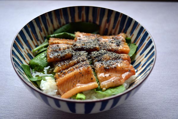 アナゴとホウレンソウの黒ごま丼(提供写真)