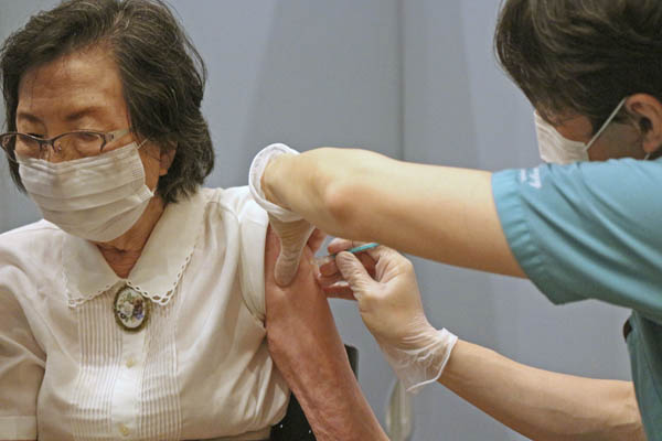 新型コロナウイルスのワクチン接種を受ける女性(C)共同通信社