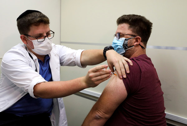 イスラエルで3回目のワクチン接種をする男性(C)ロイター