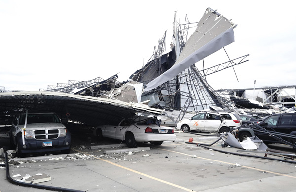 竜巻で壁が倒壊した米イリノイ州のアマゾンの倉庫.(C)UPI=共同