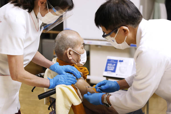 3回目の新型コロナワクチン接種を受ける男性(C)共同通信社