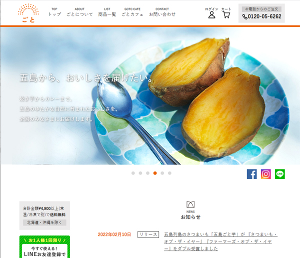 五島列島の「五島ごと芋」は通常の焼き芋の糖度2倍の甘さが特徴