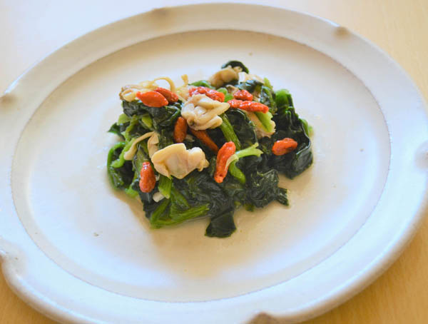アサリとホウレンソウのクコの実ドレッシングサラダ(提供写真)