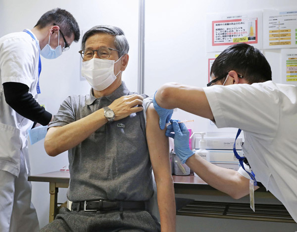 新型コロナワクチンの3回目接種を受ける感染症対策分科会の尾身会長(代表撮影)