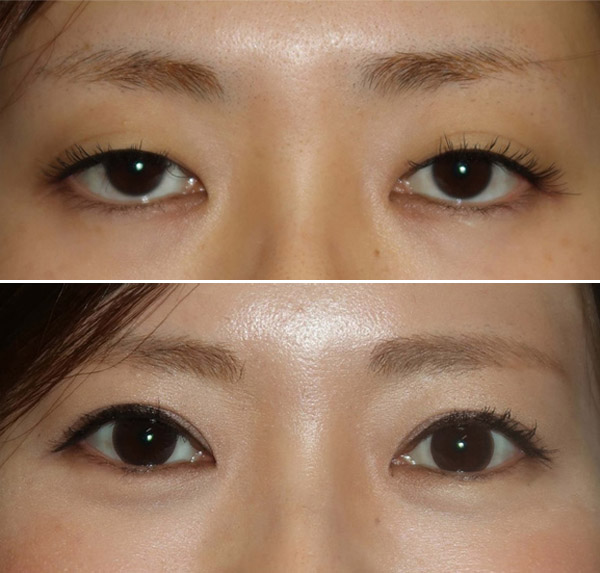 「腱膜前転法」の手術前(上)と術後6カ月(下)/(古田淳院長提供)