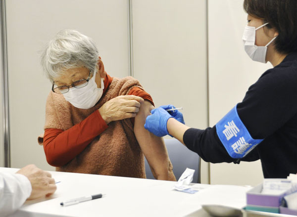 3回目接種を受ける女性(C)共同通信社