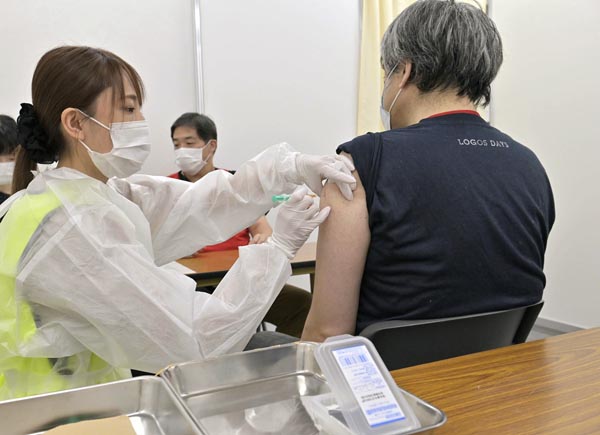 新型コロナワクチン接種を受ける人たち(代表撮影)