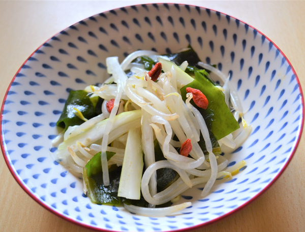 緑豆もやしとワカメ・セロリのナムル(提供写真)