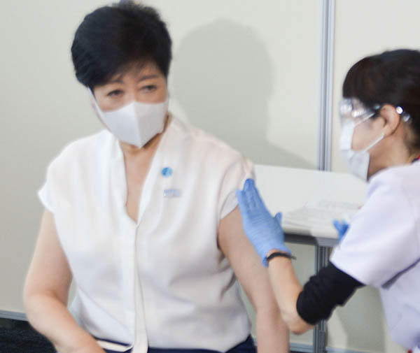 4回目接種を受ける小池百合子都知事(C)共同通信社
