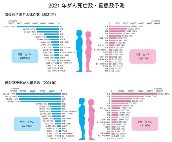 2021年がん死亡数・罹患数予測「がんの統計 2022」(がん研究振興財団)