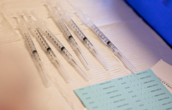 50歳以上または免疫不全の人向けに用意された新型コロナワクチンの注射器(C)ロイター