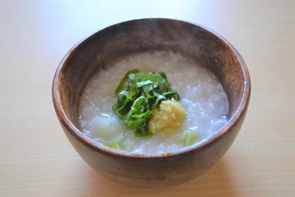 ショウガとネギ、青じそのおかゆ(提供写真)