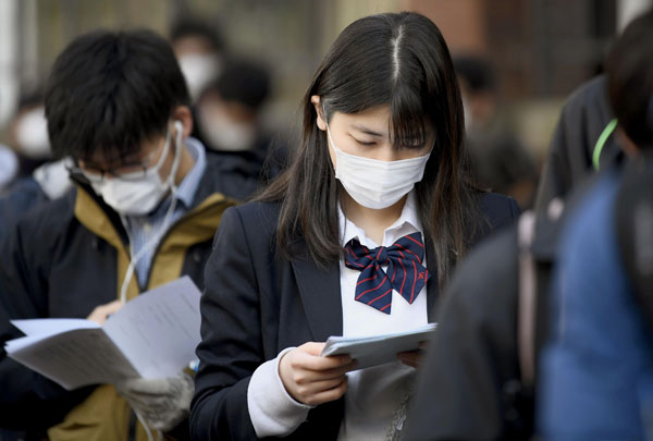 マスクは屋内・屋外を問わず着用した方がいい(マスクをして受験会場に向かう高校生)/(C)共同通信社