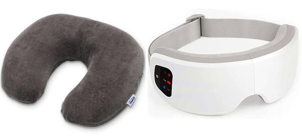 テンピュールの「トランジットピロー」(左)と日創プラスの「EYE RELAX」/(提供写真)