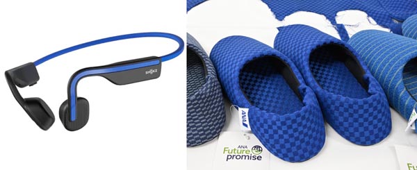 Shokzの「OpenMove」(左)と「ANA特製ルームシューズ」/(提供写真)