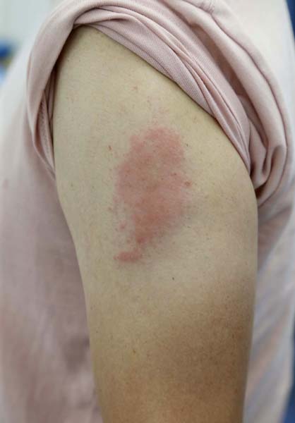 新型コロナワクチン接種後に腫れた様子(C)日刊ゲンダイ