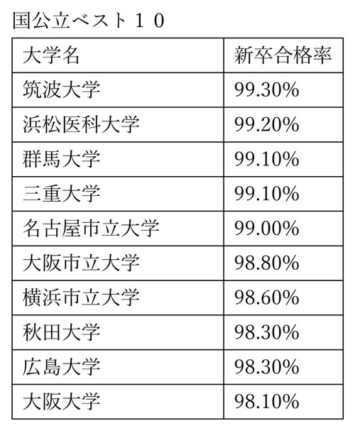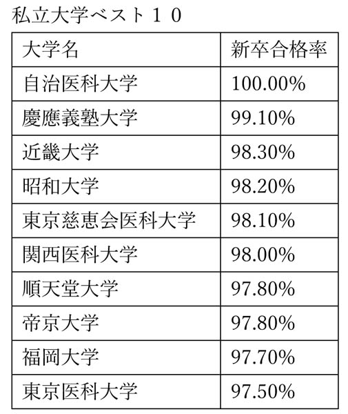 2022年度 医師国家試験 新卒合格率(留年生を含めた合格率)