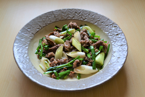牛肉とネギ、ニラの山椒炒め(提供写真)