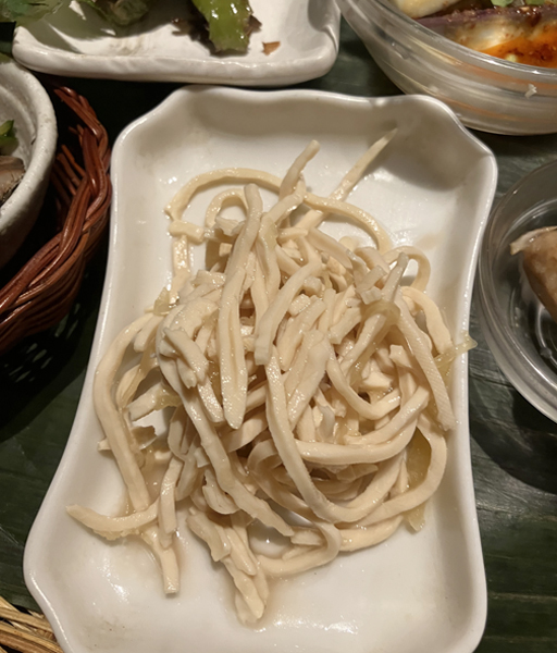 “まるで麺”の豆腐干絲とそうめんカボチャを一緒にいただく