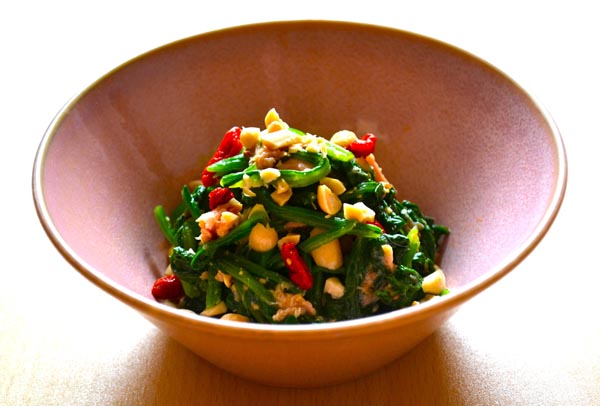 ホウレンソウとツナの落花生マスタード酢みそあえ(提供写真)