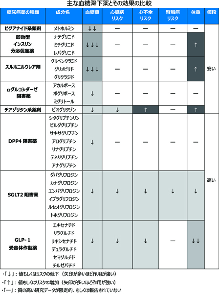 主な血糖降下薬とその効果の比較(C)日刊ゲンダイ