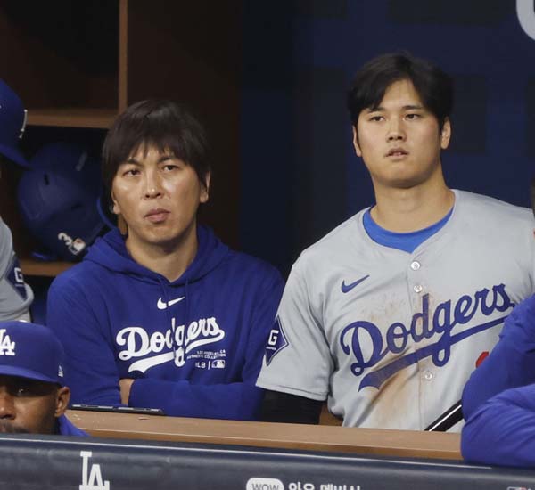 大谷翔平選手(右)と解雇された通訳の水原一平氏(C)共同通信社