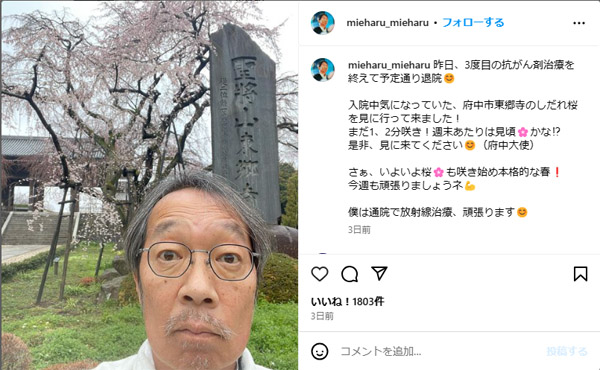 見栄晴さんは「下咽頭がん」治療の良好な経過を報告…化学放射線療法の魅力は機能温存