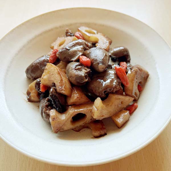 鶏ハツとれんこんのバルサミコ醤油煮(提供写真)