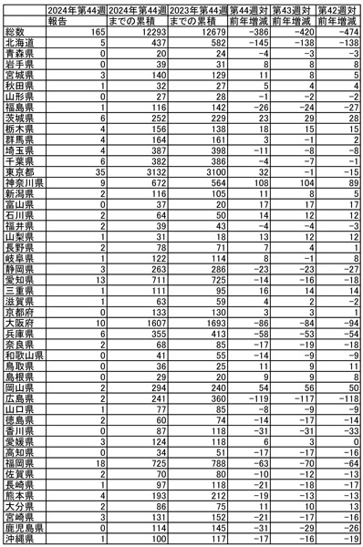 国立感染症研究所の感染症発生動向調査(IDWR)速報データ第44週(10月28日~11月3日)を元に作成(C)日刊ゲンダイ