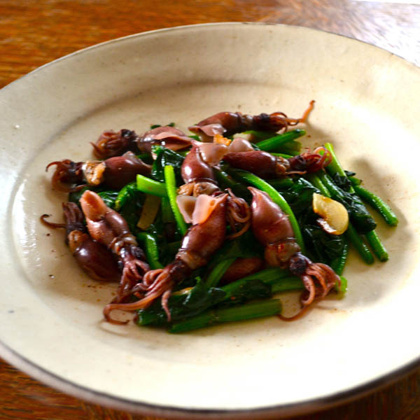 ホタルイカと菜の花のペペロン炒め(提供写真)