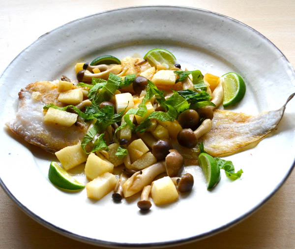 ひらめのソテー~すだち香るナガイモときのこソース(提供写真)