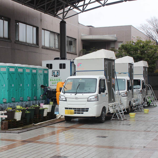 能登半島地震で設置された七尾市の避難所の仮設トイレ(C)日刊ゲンダイ