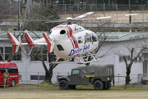 石川・能登半島地震で患者を搬送するドクターヘリ(C)共同通信社