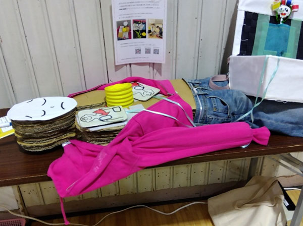 段ボールで手作りした胸骨圧迫とAEDの訓練用人形(提供写真)
