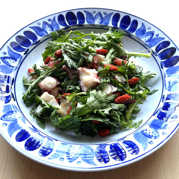 タコと春菊、クコの実のサラダ(提供写真)