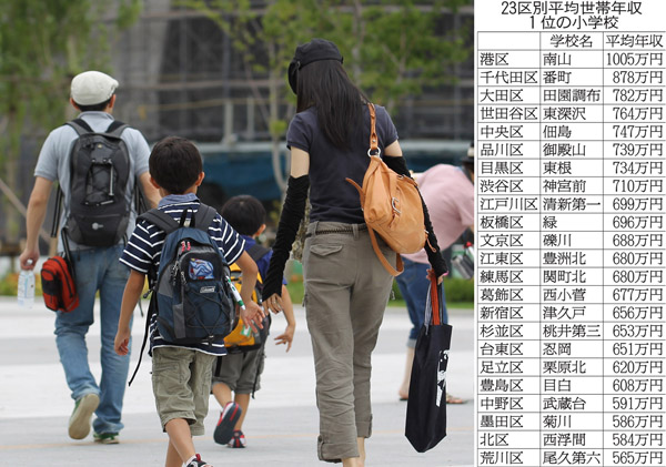 東京23区公立小学校別「平均世帯年収」トップの顔ぶれ